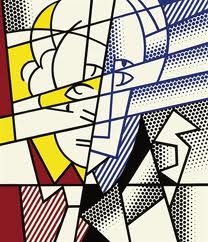 Roy Lichtenstein, so famous for enormous canvasses of comicstrip heads talking, has chopped up his own face and he is speechless.