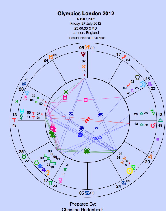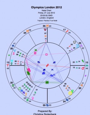 But there’s something about the London 2012 Olympics that’s a game changer. It’s as if the Olympics reach a moment with these Games when they have to renew themselves or die, transform themselves or be finished. One noticeable difference already is the foregrounding of the Paralympics (Chiron-Neptune sextile Pluto).