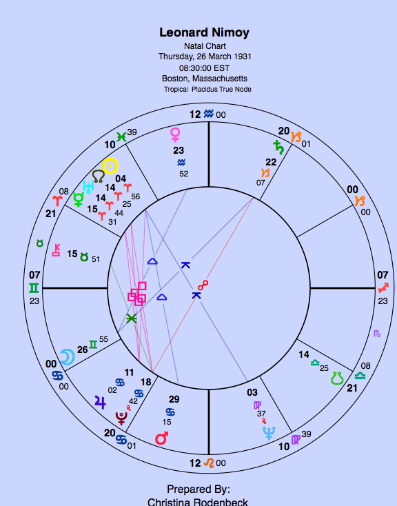 All his life, Nimoy has danced to Uranus’ tune, closely conjunct as it is to his ruling planet, Mercury.